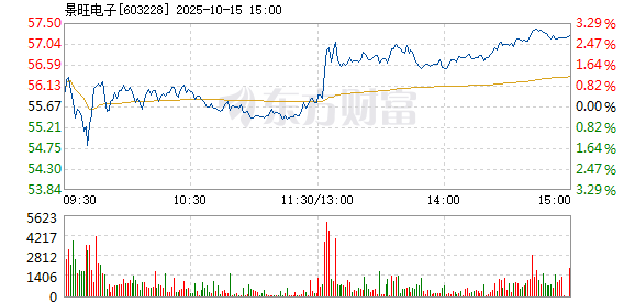 景旺电子盘中快速反弹,5分钟内涨幅超过2%,截至9点45分,报56.16元,成交2.31亿元,换手率0.43%。