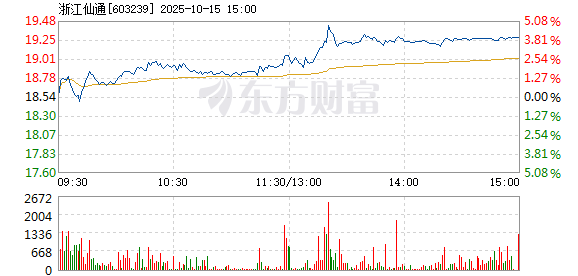 浙江仙通盘中快速反弹,5分钟内涨幅超过2%,截至9点45分,报18.87元,成交2725.31万元,换手率0.54%。