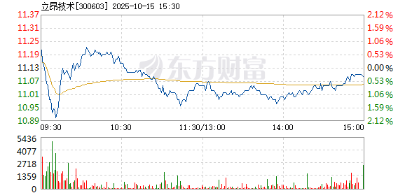 10月15日,立昂技术盘中快速反弹,5分钟内涨幅超过2%,截至9点45分,报11.15元,成交4015.90万元,换手率0.99%。