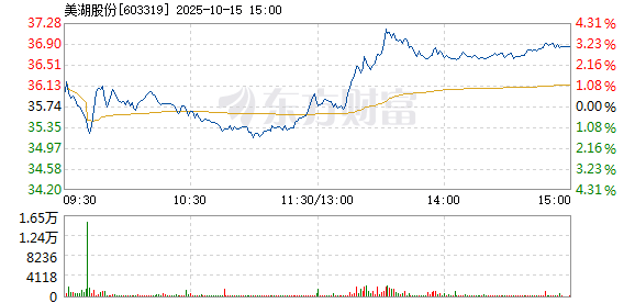 美湖股份盘中快速反弹,5分钟内涨幅超过2%,截至9点46分,报36.08元,成交1.37亿元,换手率1.14%。