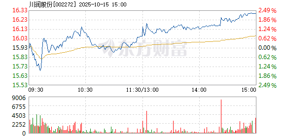 川润股份盘中快速反弹,5分钟内涨幅超过2%,截至9点46分,报16.02元,成交7407.04万元,换手率1.21%。