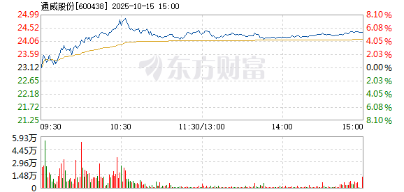 以下是通威股份在北京时间10月15日09:46分盘口异动快照:10月15日,