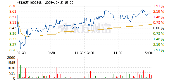 *ST高斯盘中快速反弹,5分钟内涨幅超过2%,截至9点46分,报8.43元,成交1012.18万元,换手率0.73%。