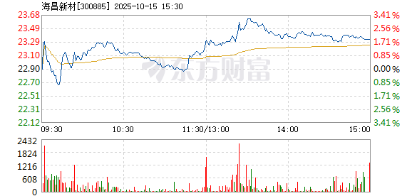 以下是海昌新材在北京时间10月15日09:46分盘口异动快照:10月15日,