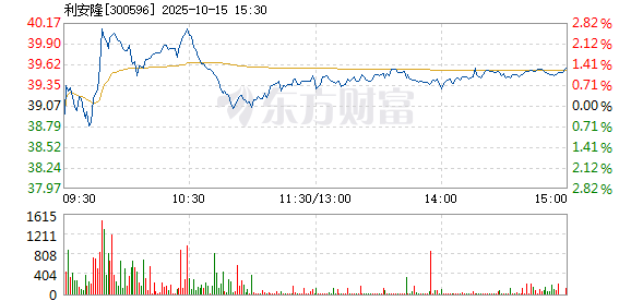 利安隆盘中快速反弹,5分钟内涨幅超过2%,截至9点46分,报39.58元,成交3068.20万元,换手率0.35%。