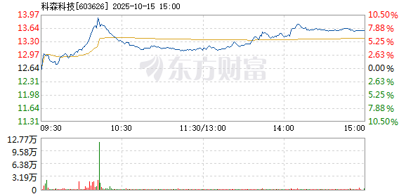 以下是科森科技在北京时间10月15日10:06分盘口异动快照:10月15日,