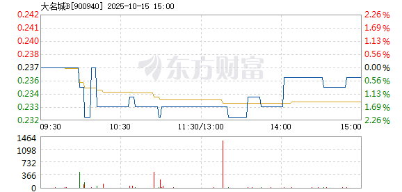 以下是大名城B在北京时间10月15日10:07分盘口异动快照:10月15日,