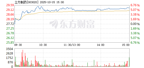 立方制药10月15日盘中涨幅达5%