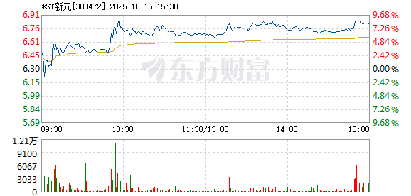 *ST新元盘中涨幅达5%,截至10点20分,报6.62元,成交6856.24万元,换手率3.99%。