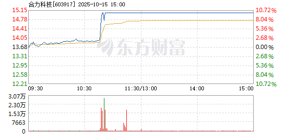 以下是合力科技在北京时间10月15日10:50分盘口异动快照:10月15日10点50分,