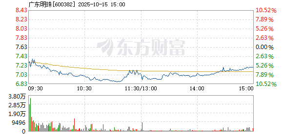 广东明珠盘中快速反弹,5分钟内涨幅超过2%,截至11点18分,报7.11元,成交4.12亿元,换手率8.34%。