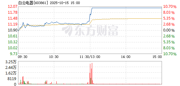 以下是白云电器在北京时间10月15日13:03分盘口异动快照:10月15日13点3分,