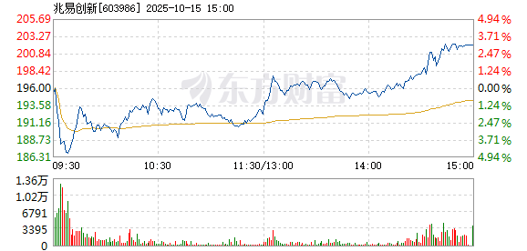 兆易创新盘中快速反弹,5分钟内涨幅超过2%,截至13点04分,报196.25元,成交43.51亿元,换手率3.41%。