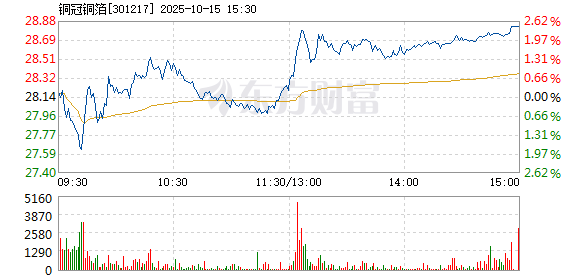 以下是铜冠铜箔在北京时间10月15日13:06分盘口异动快照:10月15日,
