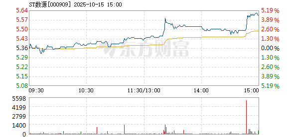 以下是ST数源在北京时间10月15日13:22分盘口异动快照:10月15日,