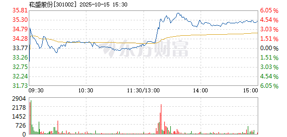 盘中涨幅达5%,截至13点24分,报35.46元,成交1.34亿元,换手率5.23%。