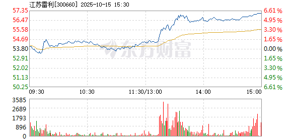 江苏雷利10月15日盘中涨幅达5%