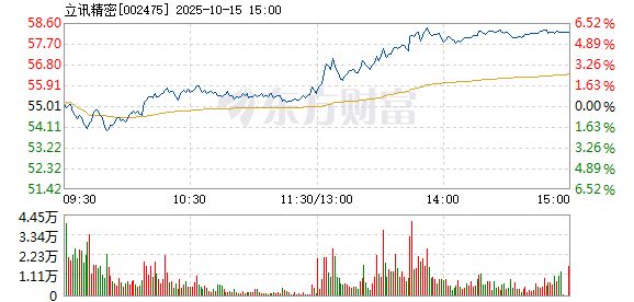 以下是立讯精密在北京时间10月15日13:44分盘口异动快照:10月15日,