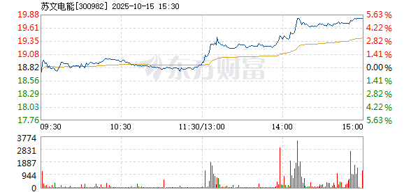 苏文电能盘中涨幅达5%,截至14点11分,报19.78元,成交9314.46万元,换手率2.50%。