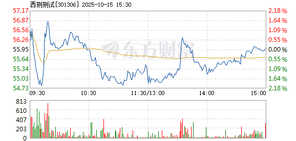 西测测试盘中快速反弹,5分钟内涨幅超过2%,截至9点45分,报56.46元,成交3058.16万元,换手率0.94%。