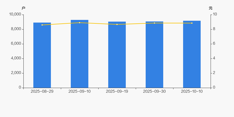 2025年8月29日至今,公司股东户数有所增长,区间涨幅为2.82%。2025年8月29日至2025年10月10日区间股价上涨2.91%。