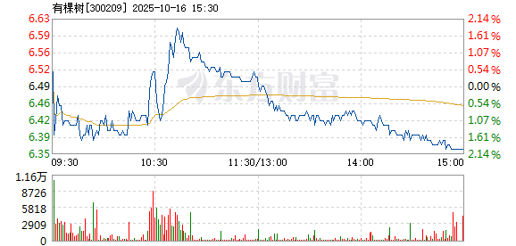 有棵树盘中快速回调,5分钟内跌幅超过2%,截至9点30分,报6.36元,成交540.18万元,换手率0.17%。
