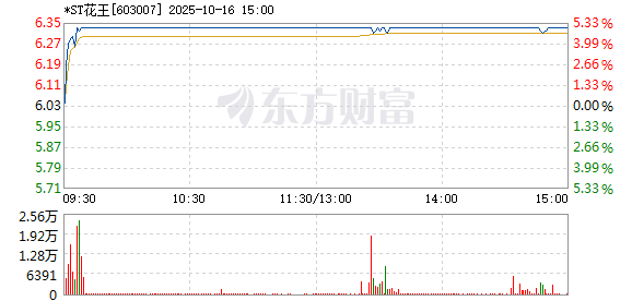 *ST花王盘中涨停,报6.33元,目前封单25192手,折合1594.66万元。截至目前,成交4382.51万元,换手率1.40%。