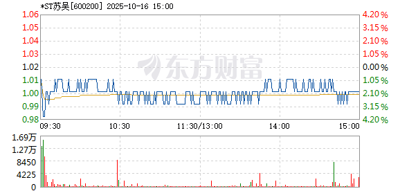 以下是*ST苏吴在北京时间10月16日09:36分盘口异动快照:10月16日,