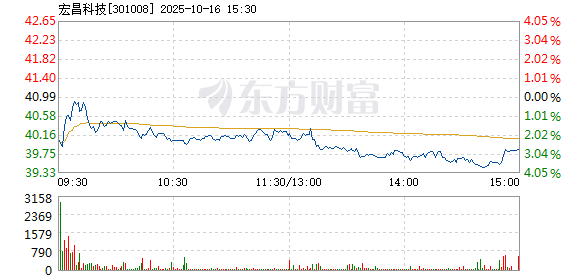 宏昌科技盘中快速反弹,5分钟内涨幅超过2%,截至9点36分,报40.75元,成交4085.70万元,换手率0.88%。
