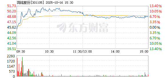 鸿铭股份盘中涨幅达5%,截至9点37分,报47.93元,成交3208.41万元,换手率4.21%。