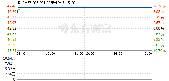 成飞集成盘中打开涨停,现报46.9元,成交10.04亿元,换手率5.98%。该股之前于9点30分涨停。