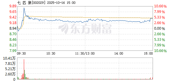 以下是七匹狼在北京时间10月16日09:41分盘口异动快照:10月16日9点41分,
