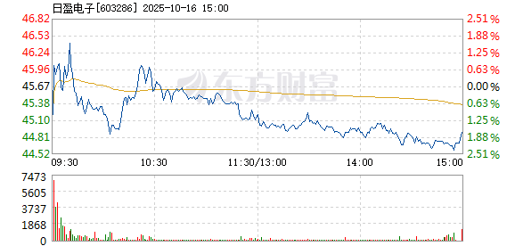 日盈电子盘中快速回调,5分钟内跌幅超过2%,截至9点44分,报45.45元,成交1.54亿元,换手率2.91%。