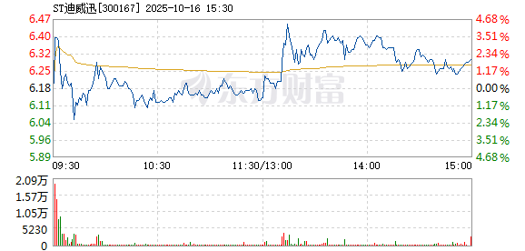 ST迪威迅盘中快速反弹,5分钟内涨幅超过2%,截至9点47分,报6.16元,成交5659.13万元,换手率2.51%。
