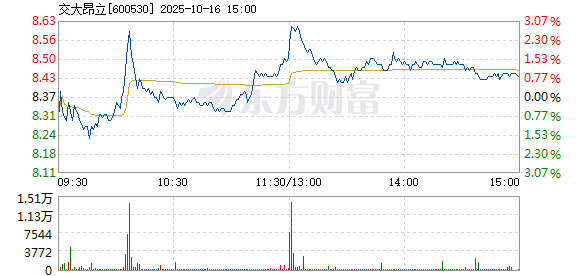 交大昂立盘中快速反弹,5分钟内涨幅超过2%,截至10点05分,报8.52元,成交2734.29万元,换手率0.42%。