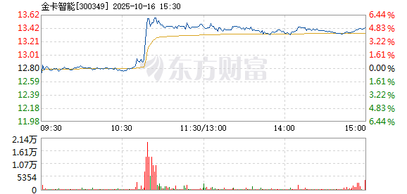 以下是金卡智能在北京时间10月16日10:46分盘口异动快照:10月16日,