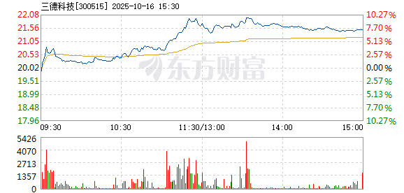 三德科技10月16日盘中涨幅达5%