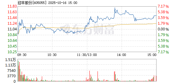 迎丰股份10月16日盘中涨幅达5%