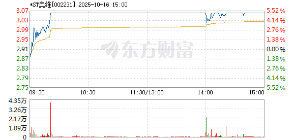 *ST奥维盘中打开涨停,现报3.04元,成交5679.46万元,换手率6.13%。该股之前于9点50分涨停。