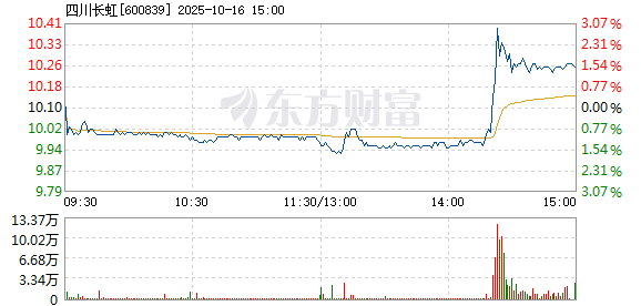 以下是四川长虹在北京时间10月16日14:25分盘口异动快照:10月16日,