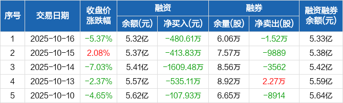 融资方面,当日融资买入2763.08万元,融资偿还3243.69万元,融资净偿还480.61万元,连续5日净偿还累计3146.96万元。融券方面,融券卖出4289股,融券偿还1.94万股,融券余量6.06万股,融券余额109.92万元。融资融券余额合计5.33亿元。