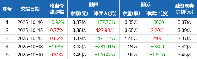 石化机械融资融券信息显示,2025年10月16日融资净偿还177.76万元;融资余额3.37亿元,较前一日下降0.53%