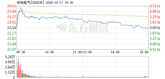 中科电气10月17日盘中涨幅达5%