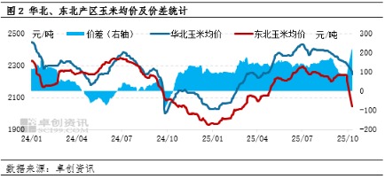 第一,四季度华北市场低质潮粮主要依靠深加工企业消化,且华北新季玉米产量存在增加预期,市场价格受深加工企业主导,或以下行趋势为主;而优质干粮供应不足,需依赖东北市场补充。