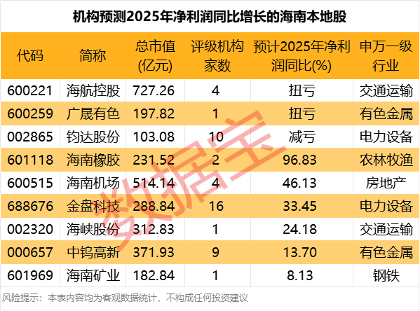 原标题:海南板块迎来政策利好 机构预测2025年净利润预计向好的海南本地股一览