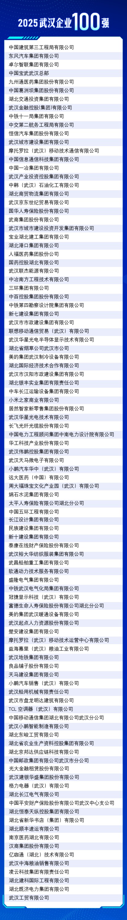 本次榜单参照国际通行做法,依据企业2024年度营业收入排序产生。根据报告,武汉企业100强中,营收“千亿级”企业为8家,与上届持平;“百亿级”企业56家,比上届增加3家,两者营收总额接近3万亿元,占综合百强企业总营收的九成以上。60家企业实现营收增长,尤其在“光芯屏端网”、商贸物流等领域及部分大型国有企业增长较快。