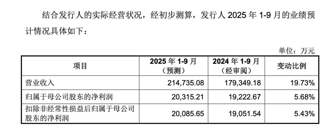大明电子招股书称,预计公司2025年前三季度实现营业收入21.47亿元,同比增长19.73%;归属于母公司股东的净利润2.03亿元,同比增长5.68%。