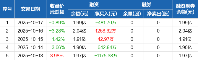 捷邦科技融资融券信息显示,2025年10月17日融资净偿还481.7万元;融资余额1.99亿元,较前一日下降2.37%