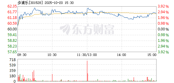 多浦乐盘中快速上涨,5分钟内涨幅超过2%,截至9点33分,报61.66元,成交433.4万元,换手率0.22%。