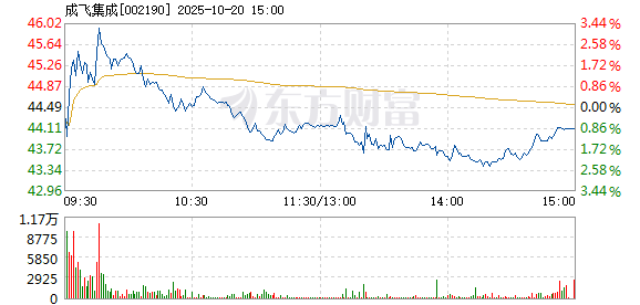 成飞集成盘中快速反弹,5分钟内涨幅超过2%,截至9点35分,报45.07元,成交1.97亿元,换手率1.23%。